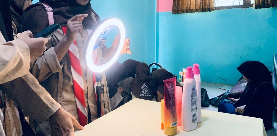 Kegiatan kemudian di mulai saat tombol “live” di aktifkan. Para host sibuk mempromosikan dagangan mereka dengan nada yang ekspresif dan kecepatan berbicara, para siswi tampak sudah mahir menguasai skill Afilliate yang mereka pelajari dari sekolah.